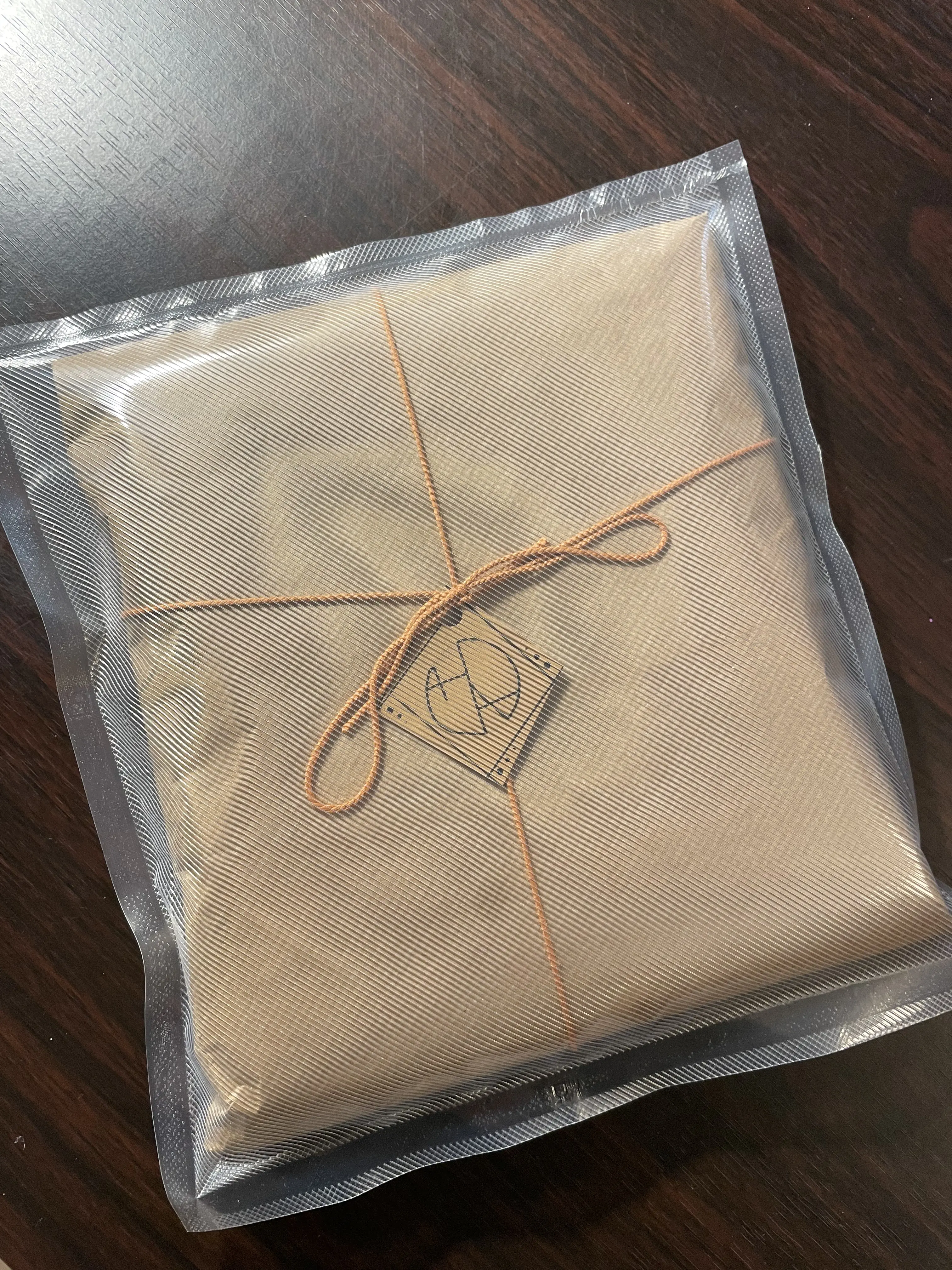 Packaged handmade bleach art t-shirt ready for shipping to a customer