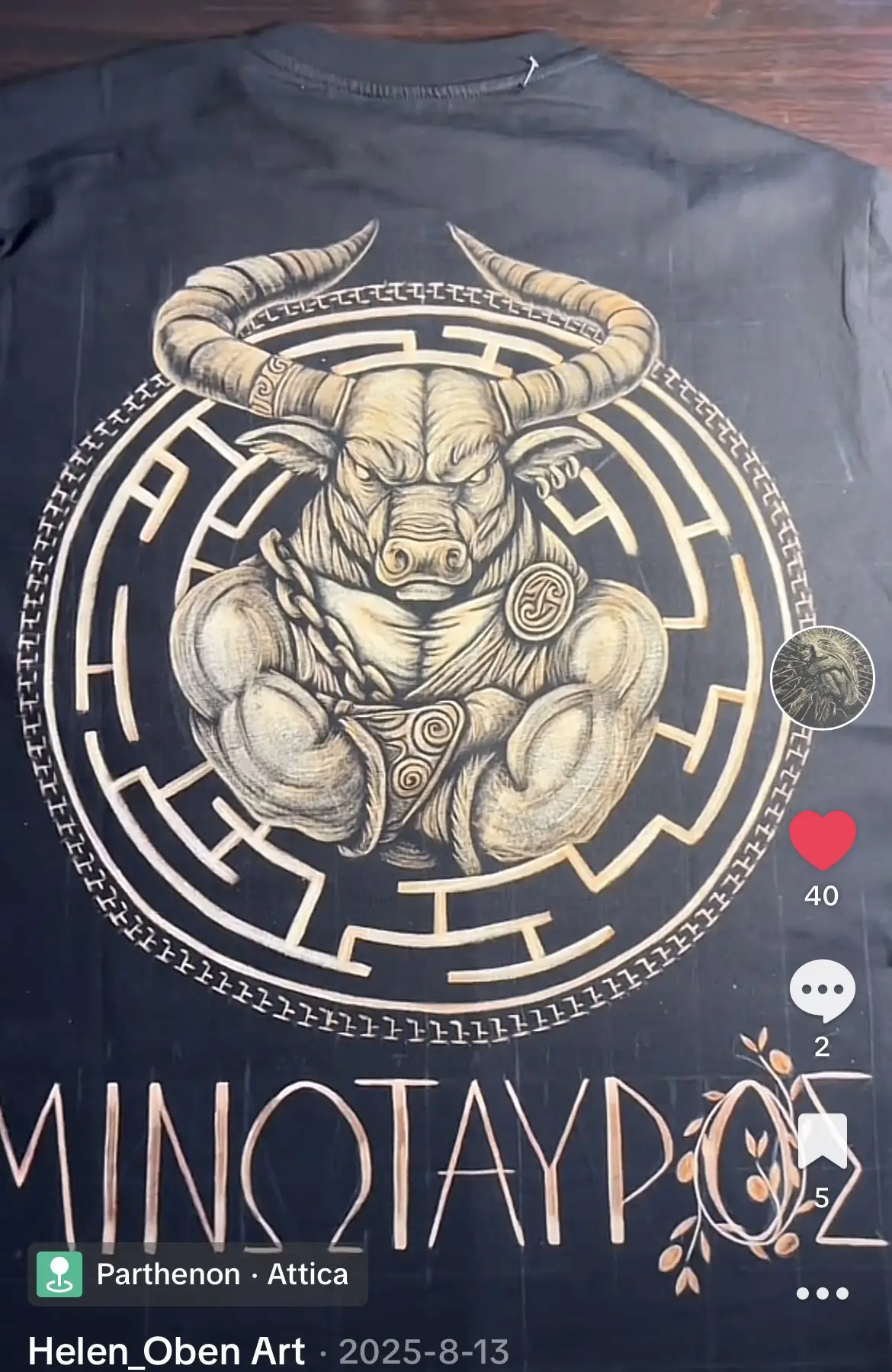 TikTok screenshot featuring a Minotaur bleach art t-shirt