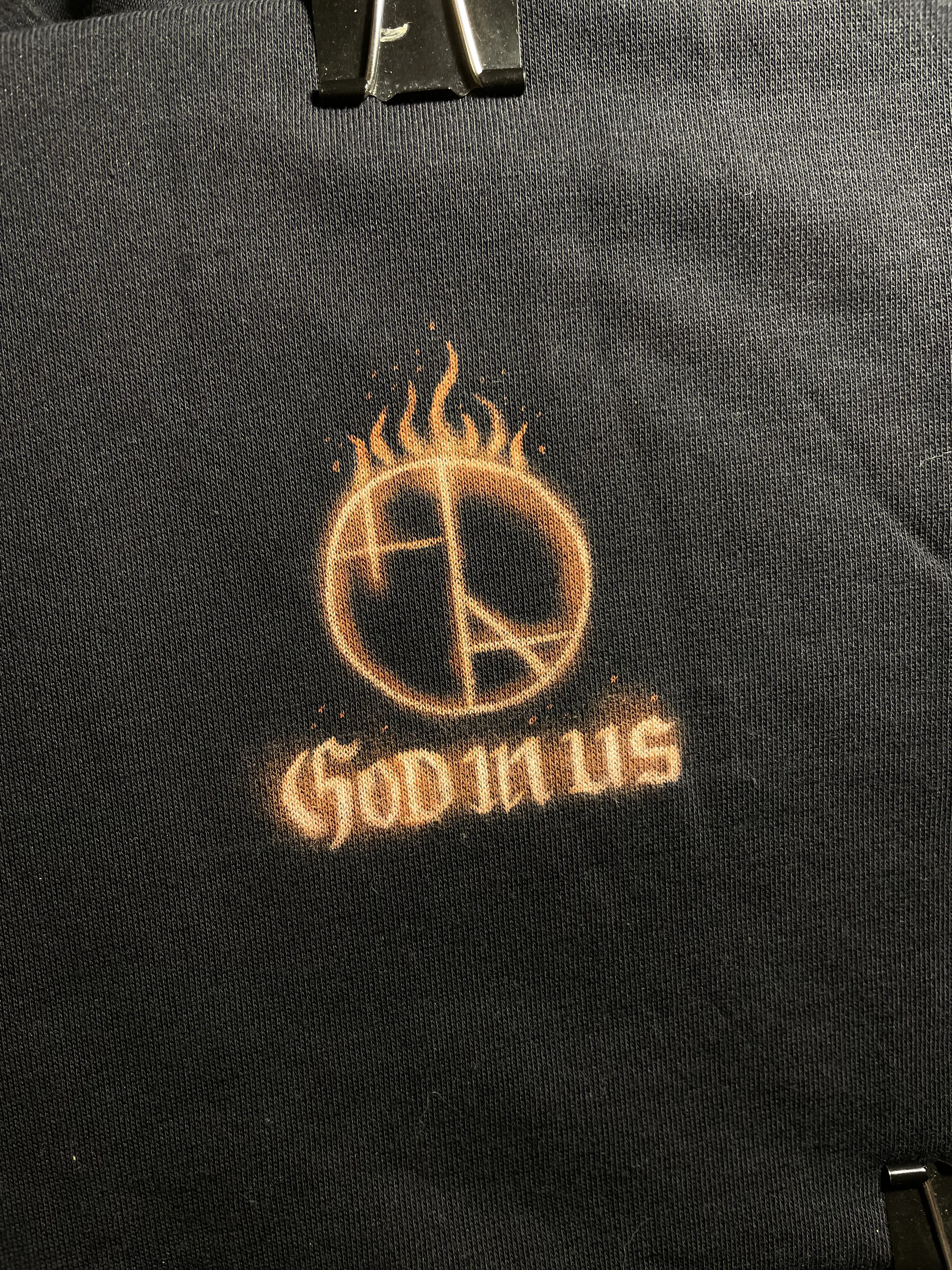 This hand painted hoodie features a powerful bleach art portrait of Jesus Christ wearing a crown of thorns, painted by hand on the back of the garment. The artwork is created using a controlled bleach technique on black fabric, producing a dramatic contrast and a raw, expressive look that cannot be replicated by printing. Each hoodie is individually hand painted, making every piece truly one of a kind. Designed for autumn and spring, this mid-weight hoodie is comfortable for everyday wear while maintaining a strong artistic and symbolic presence. This piece is not mass-produced clothing — it is wearable art inspired by faith, sacrifice, and strength. Perfect for those who appreciate religious symbolism, dark art aesthetics, and authentic hand painted clothing. Details: • Hand painted bleach art on black hoodie • Jesus Christ portrait with crown of thorns • Back print only • Size: M • Season: autumn / spring • One-of-a-kind artwork